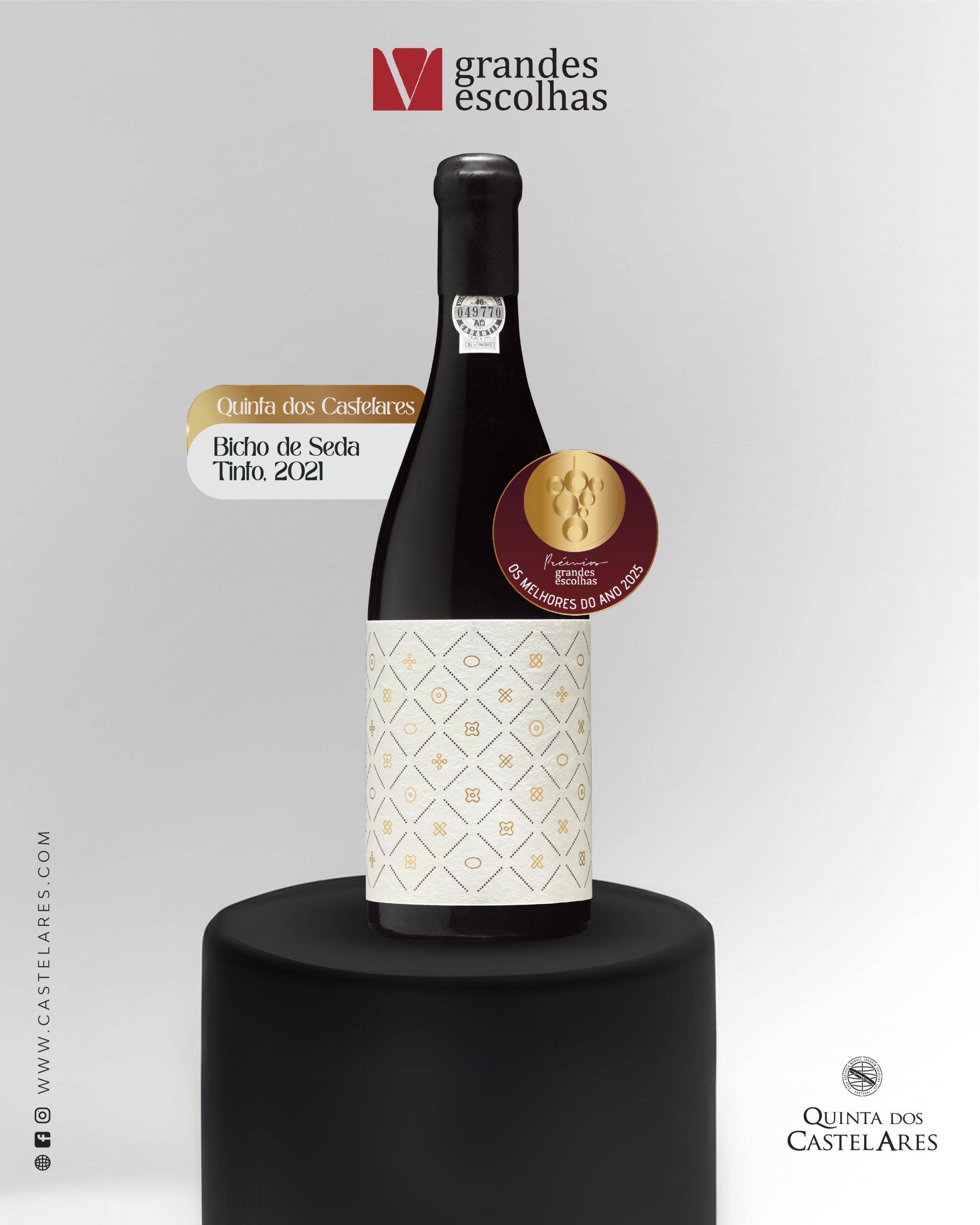 É com imensa honra que partilhamos uma distinção que nos enche de orgulho: o Quinta dos Castelares Bicho de Seda Tinto 2021 foi eleito um dos “Os Melhores do Ano 2025“ pela prestigiada revista Grandes Escolhas.